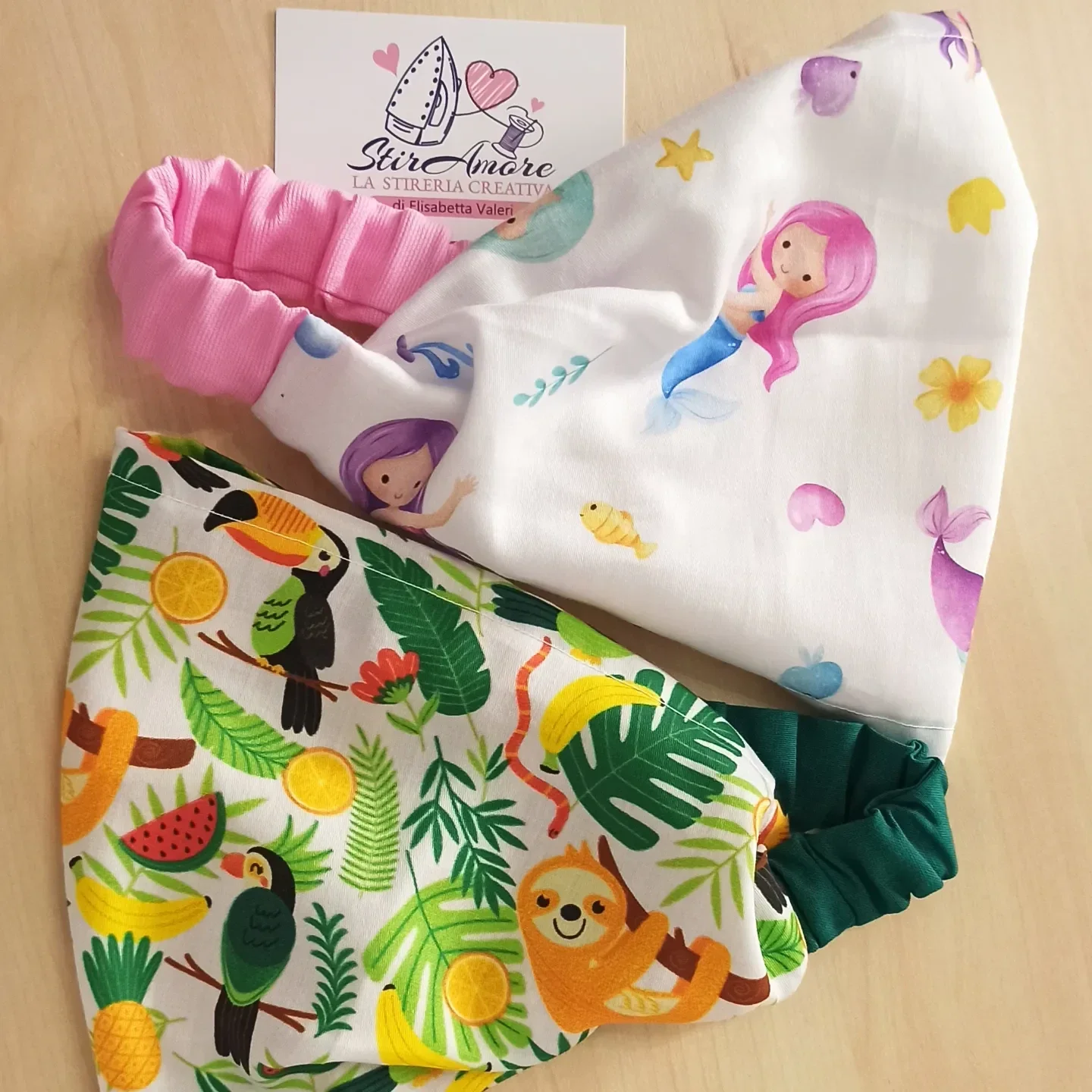 È possibile comporre un meraviglioso SET MARE con la bellissima BANDANA in coordinato e la BORSA IN RETE porta giochi..