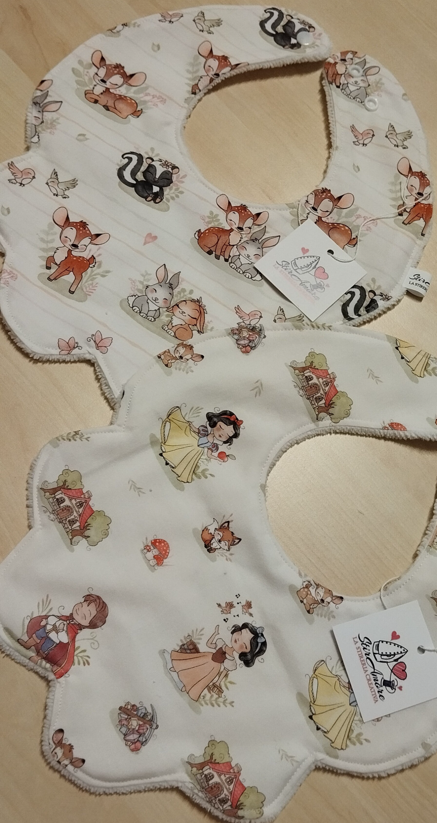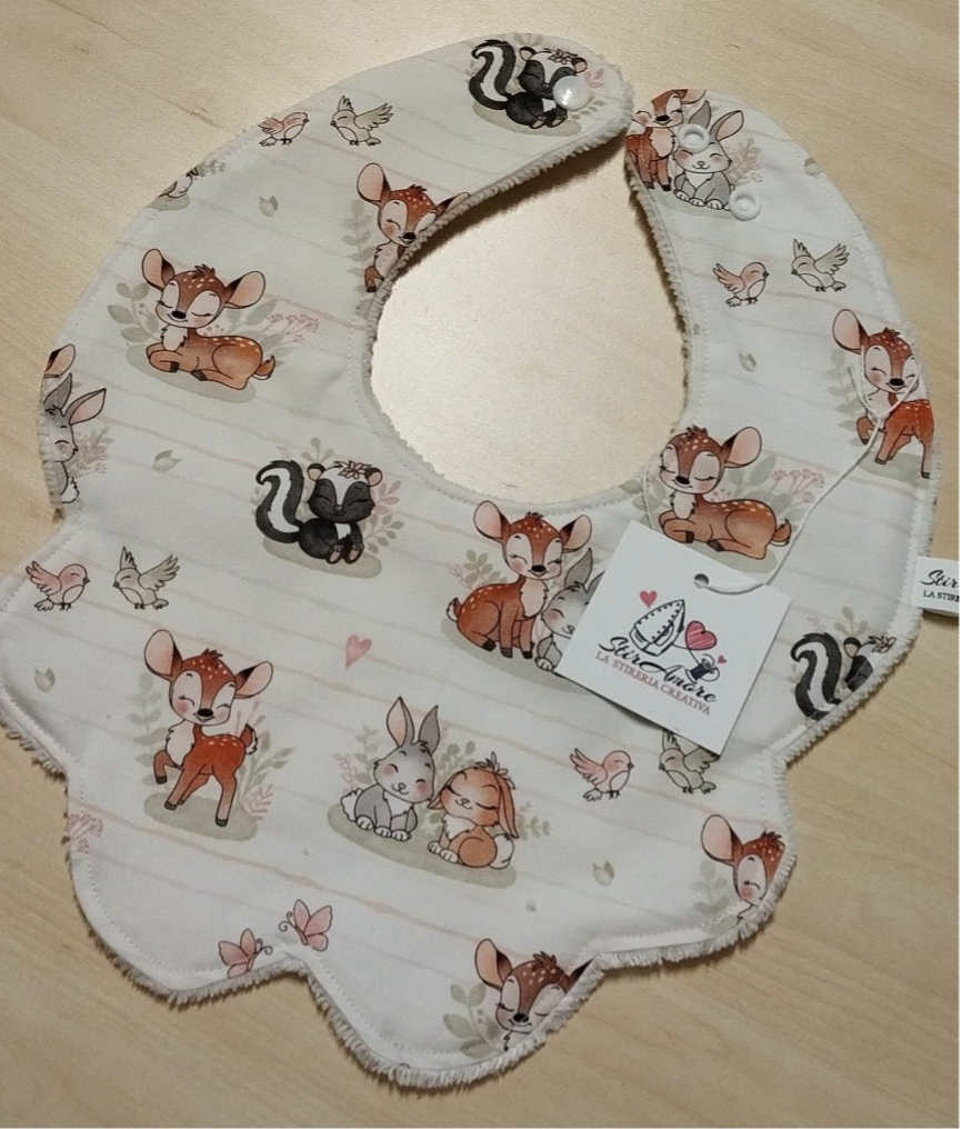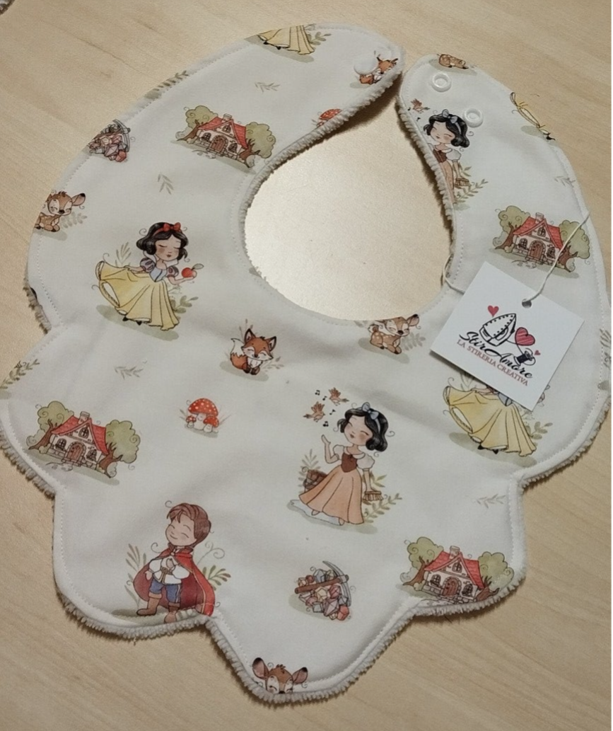 I nostri bavaglini sono realizzati in tessuto di Cotone Premium con retro in Spugna di Bamboo.