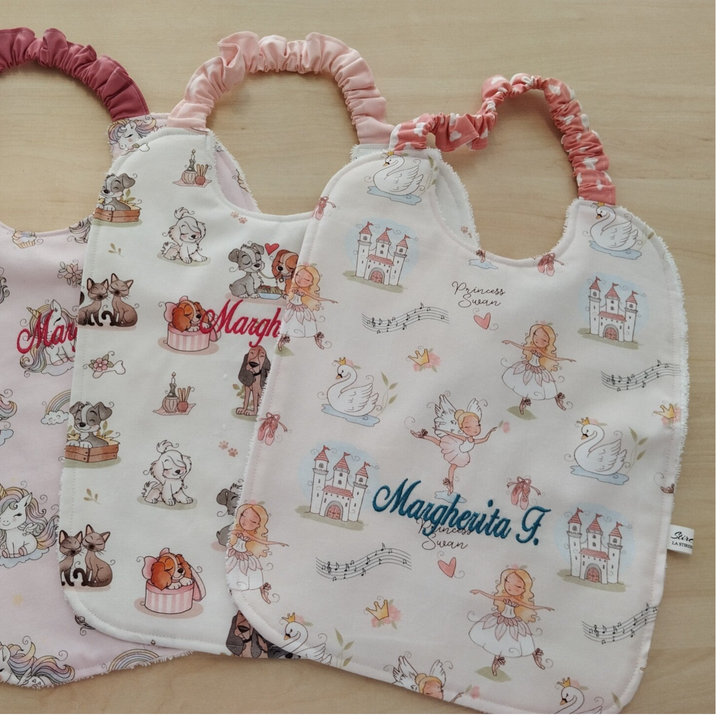 I nostri bavaglini con l'elastico sono realizzati in tessuto di Cotone Premium con retro in spugna di Cotone Biologico.