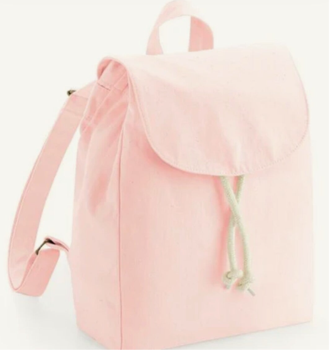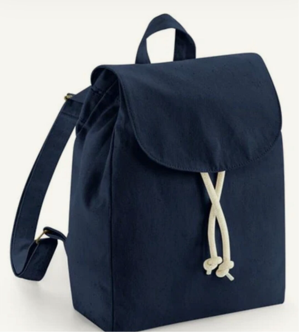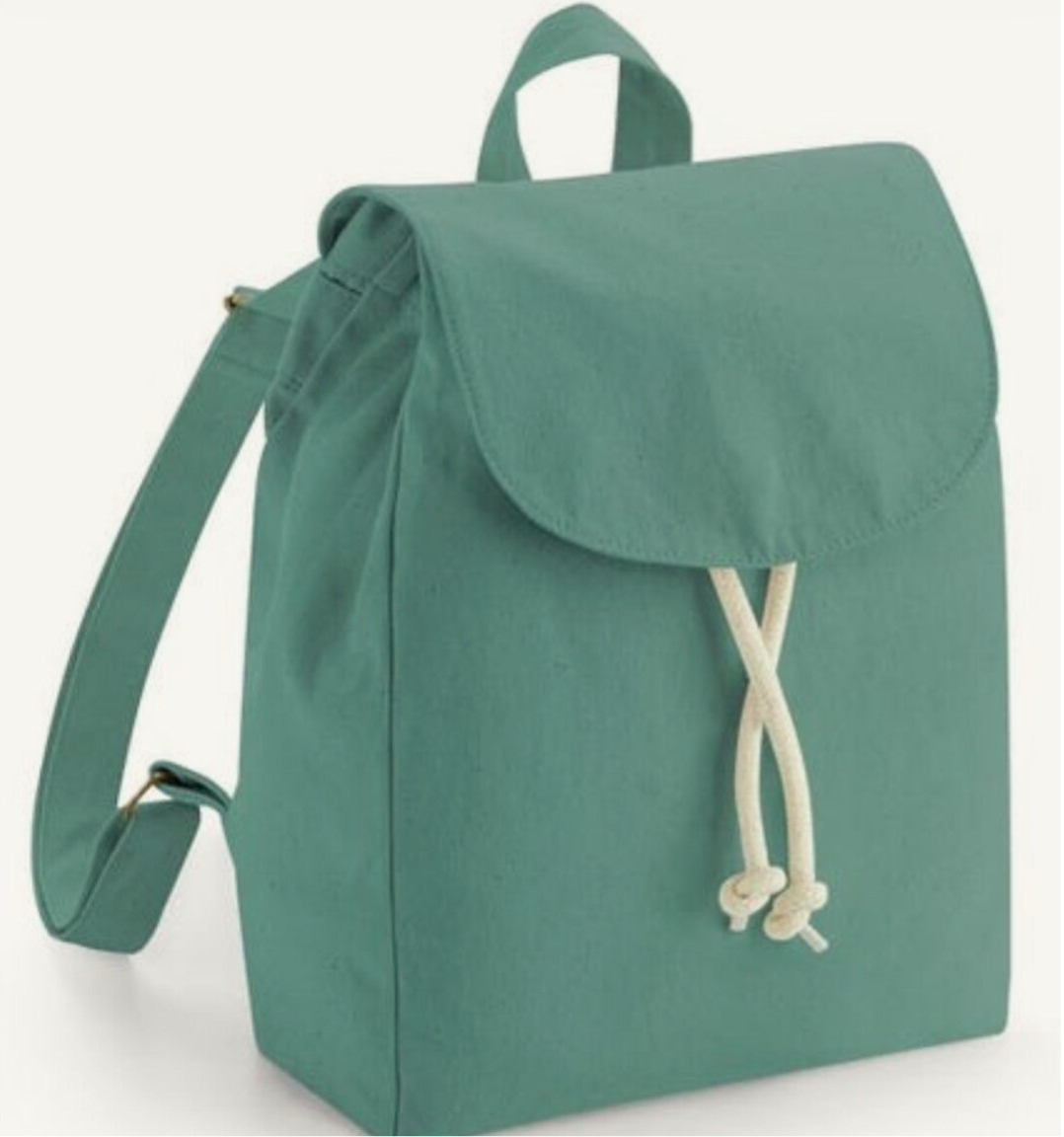 In cotone organico con spallacci morbidi e regolabili e chiusura con coulisse e calamita.