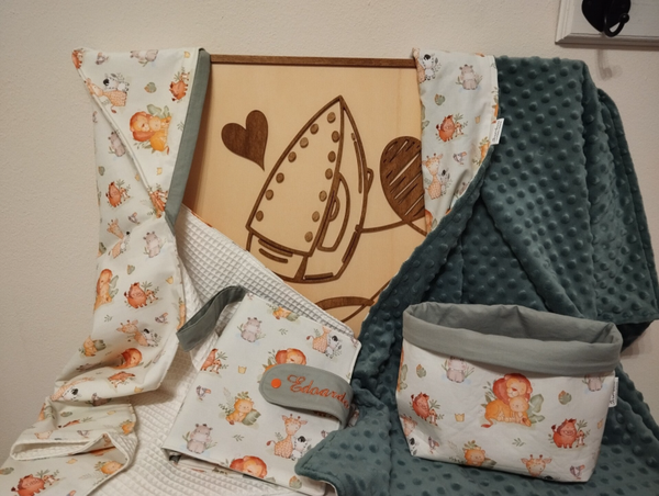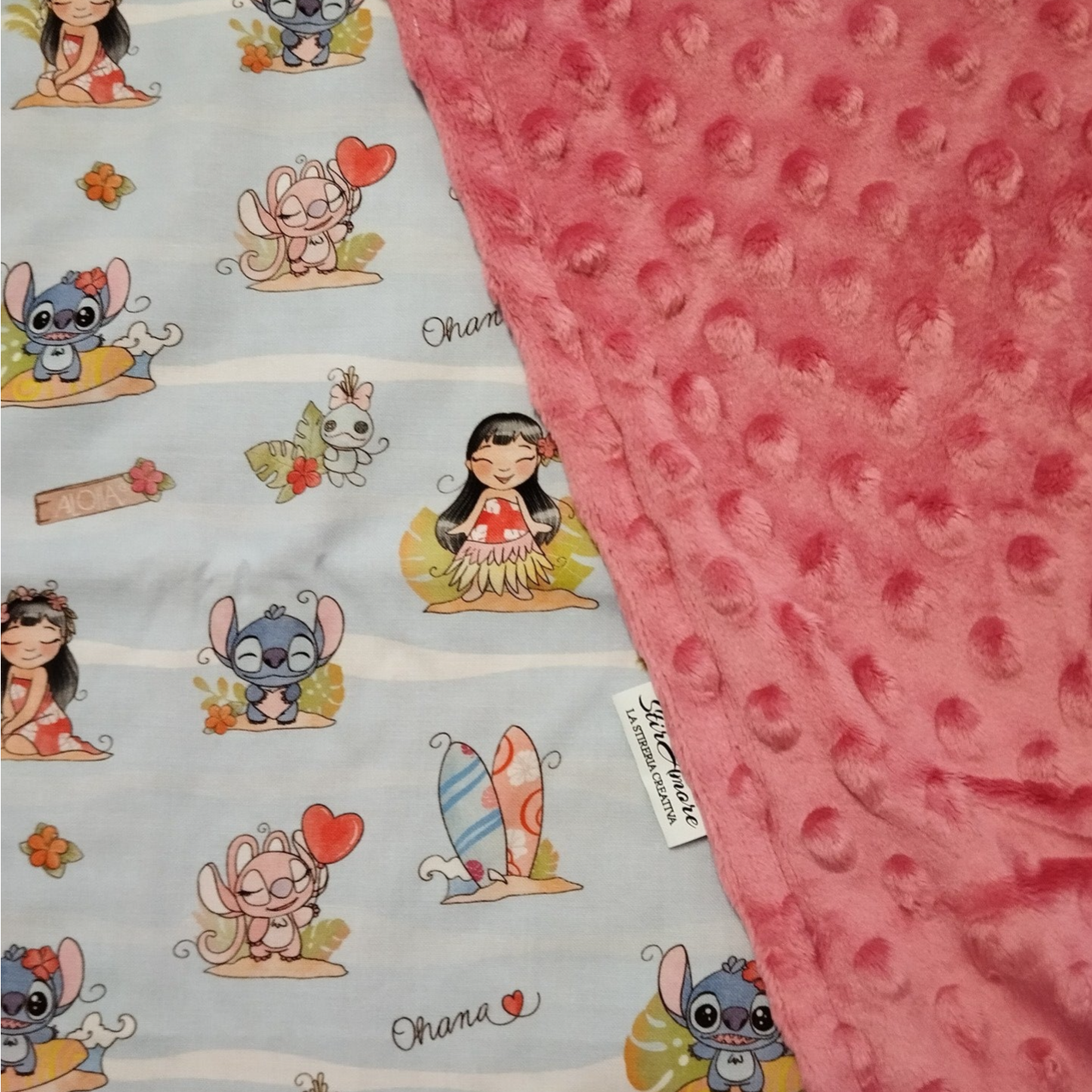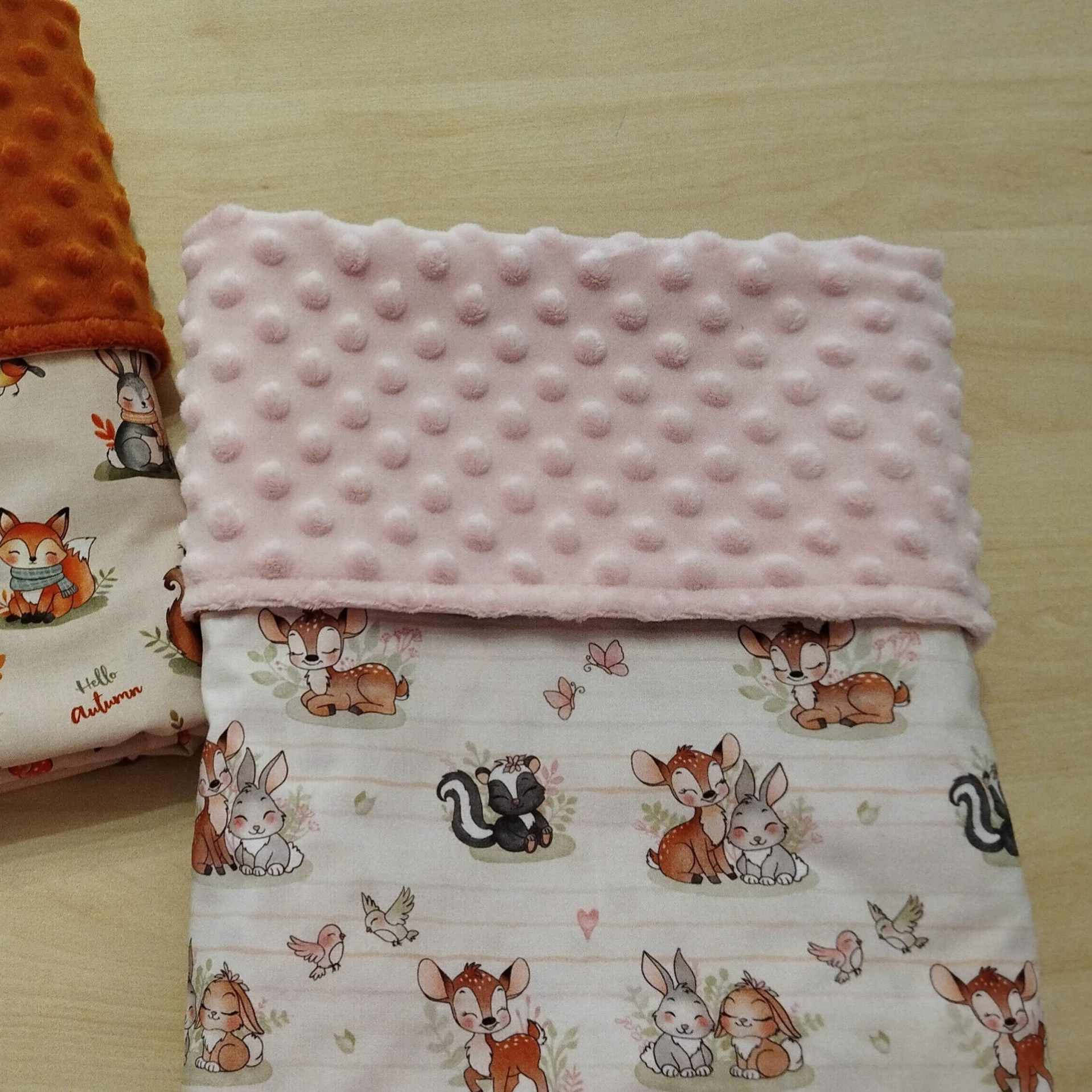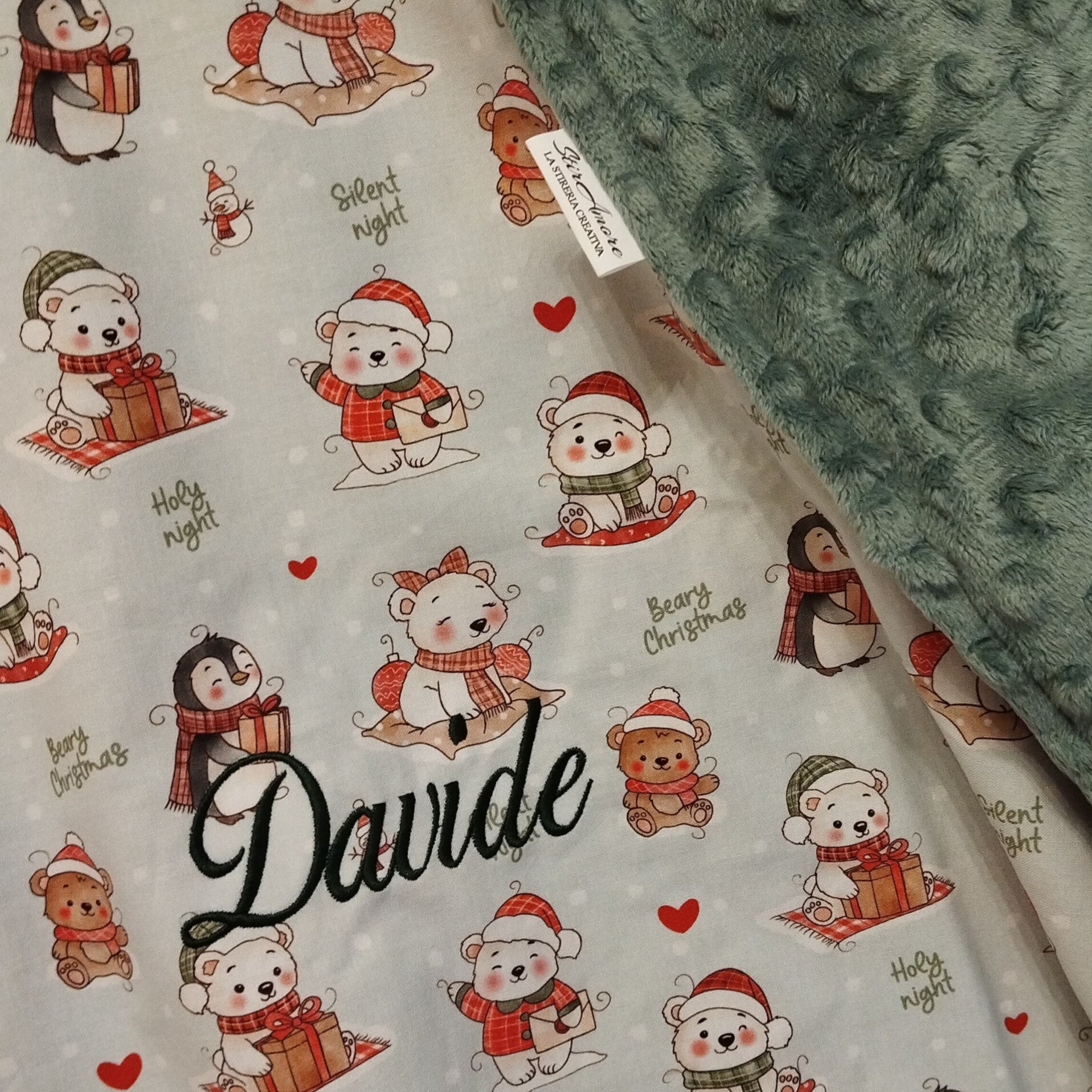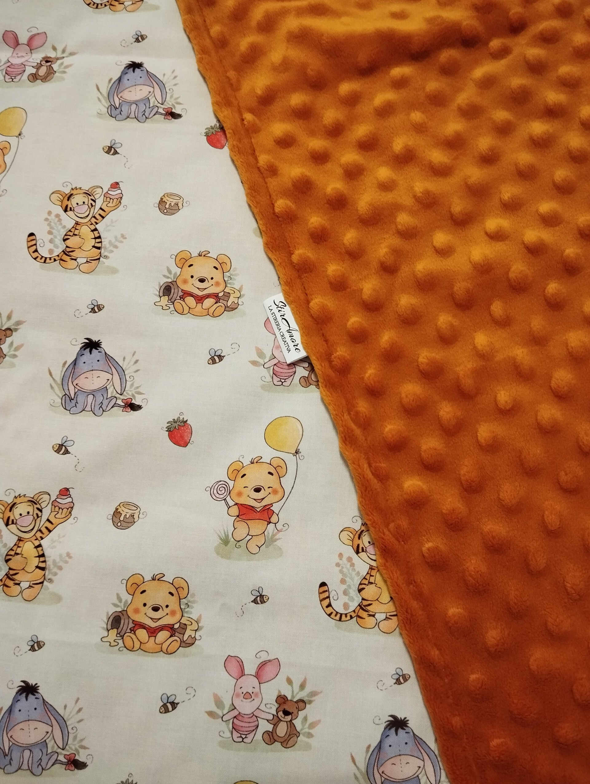 Realizziamo le nostre copertine invernali utilizzando il tessuto di Cotone Premium a fantasia con il morbidissimo e caldissimo minky pile...